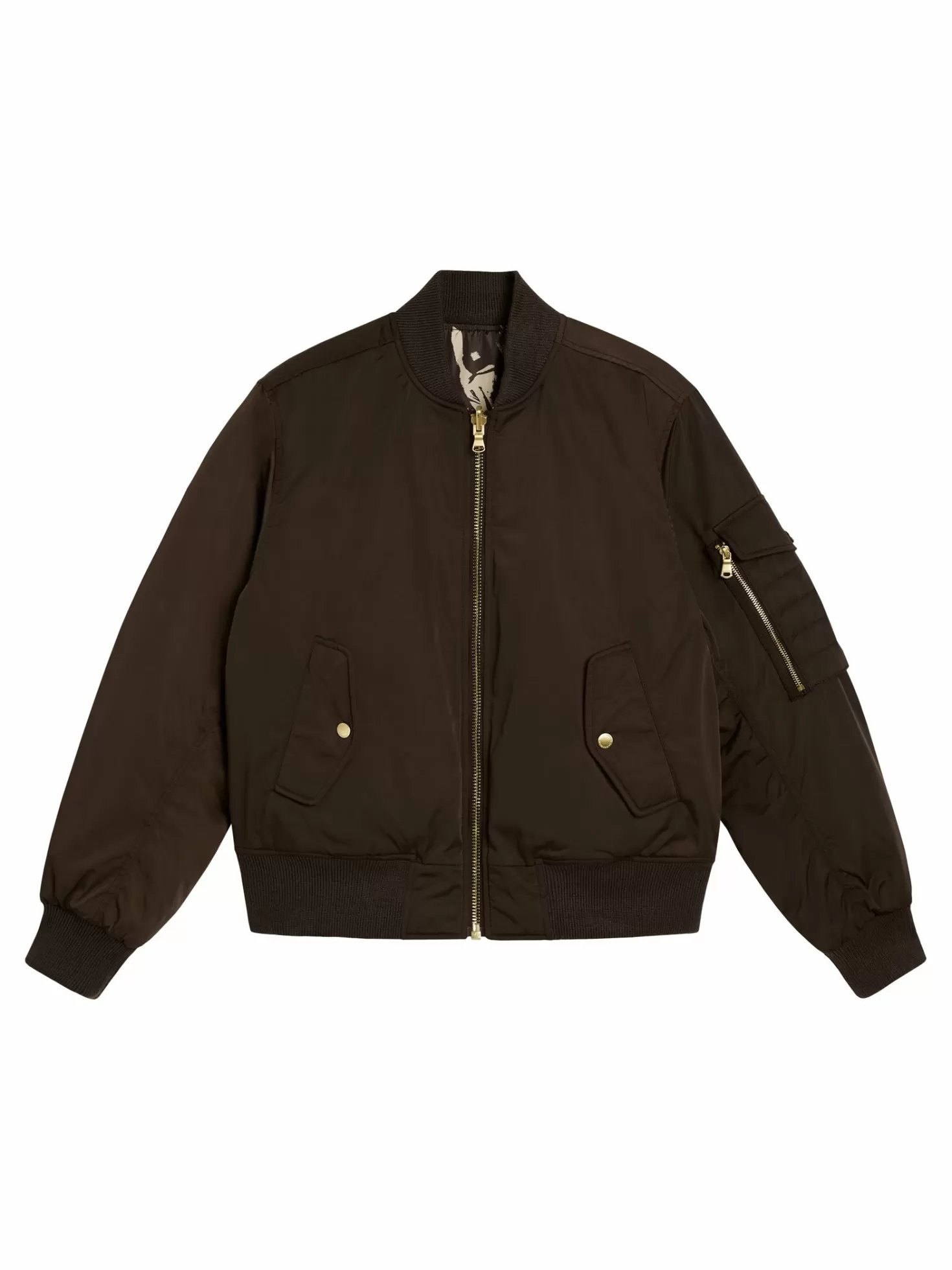 Skift Look På Et Øyeblikk Med Den Vendbare Brad-Flyverjakken I Nylon. Flyverjakken Er Lett Å Ha Over Alle Sporty Antrekk Takket Være Den Avslappede, Overdimensjonerte Passformen. Velg Mellom Den Solide Utsiden I Twill, Som Er Enda Flottere På Grunn Av Den Elegante Glansen, Eller Vreng Den Og Vis Frem Det Sesongpregede «Death Valley»-Trykket På Innsiden. Begge Sider Har Messingdetaljer, Ribbetstrikket Kant Og To Lommer. Jakken Lukkes Med En Praktisk Toveis Og Vendbar Glidelås.